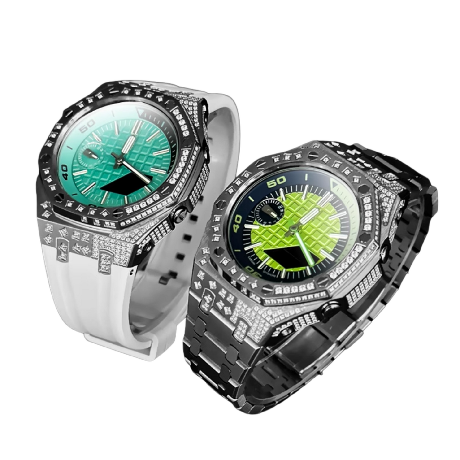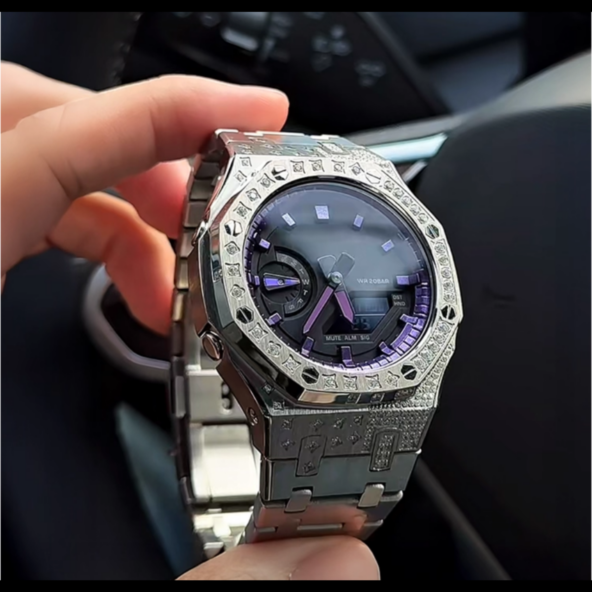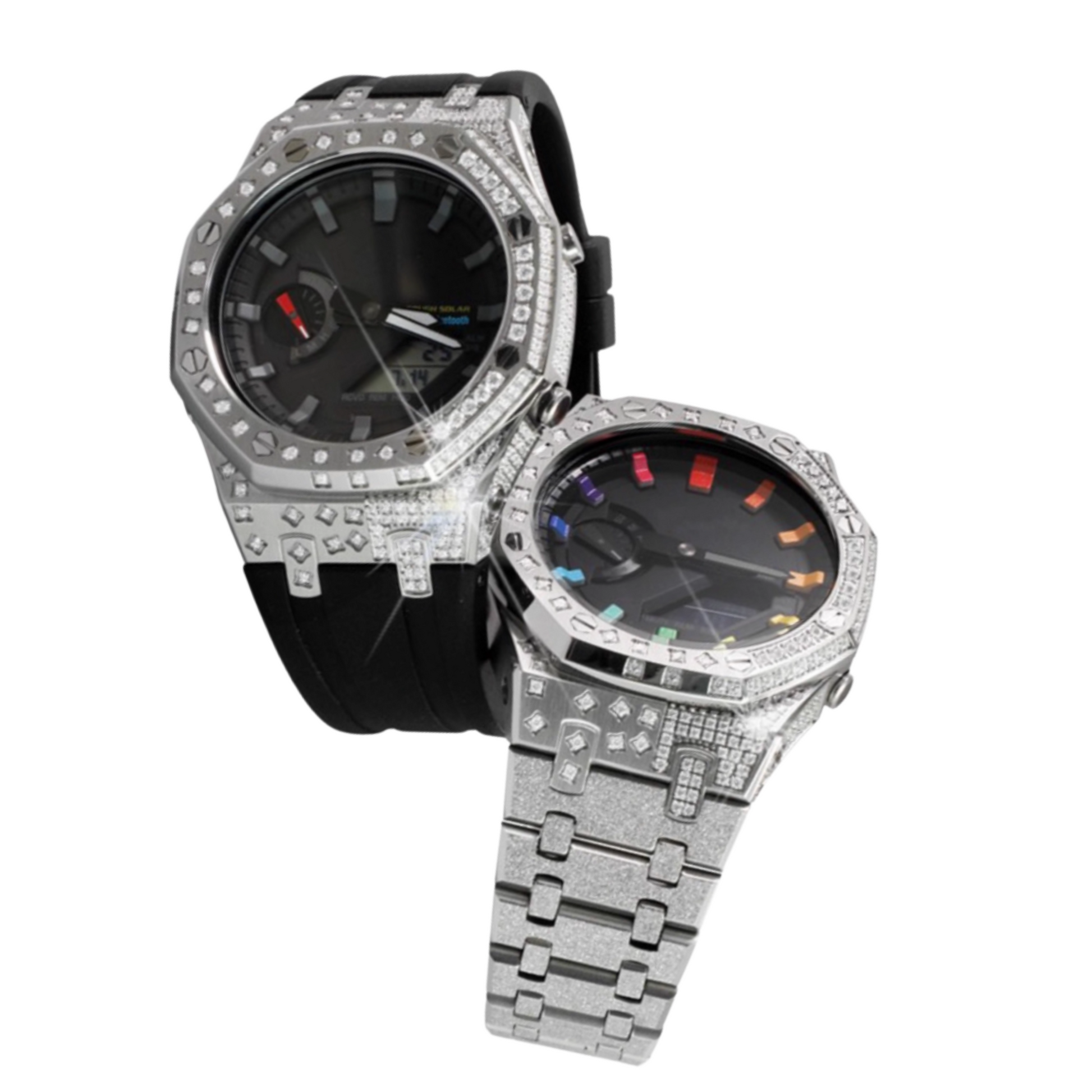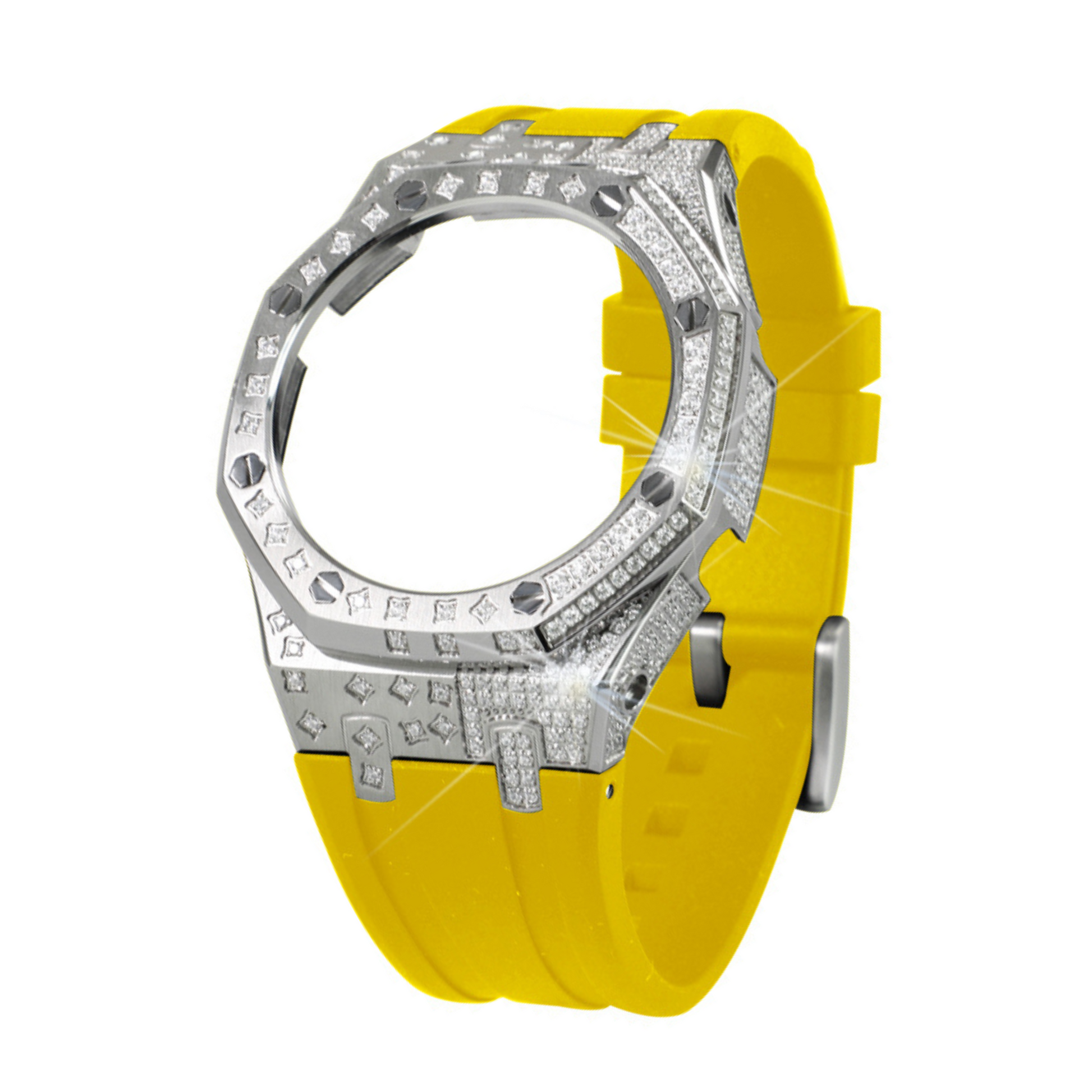 The case is encrusted with diamonds