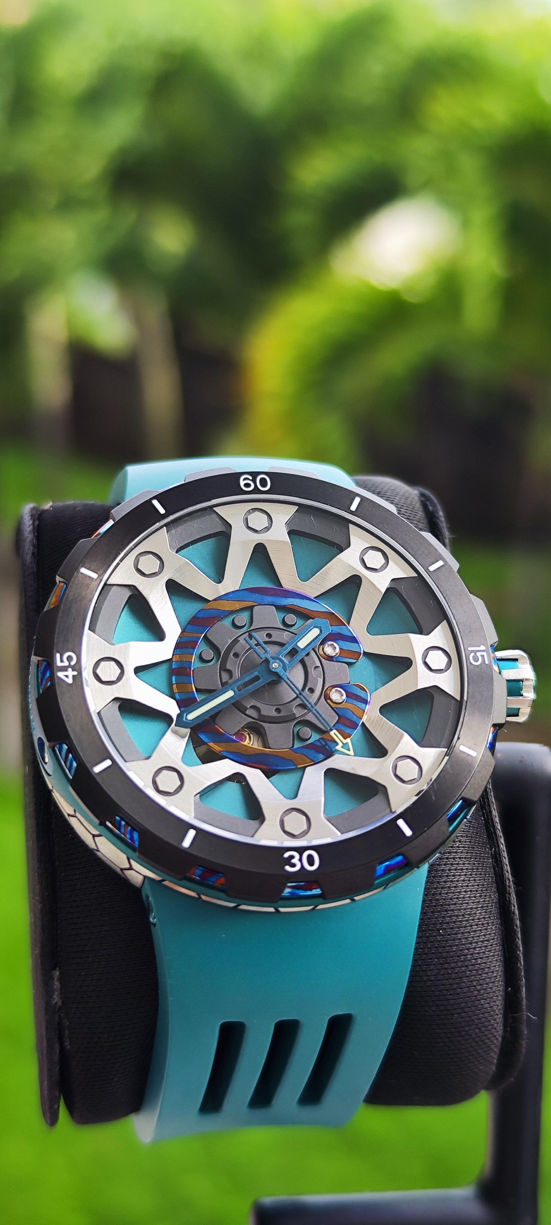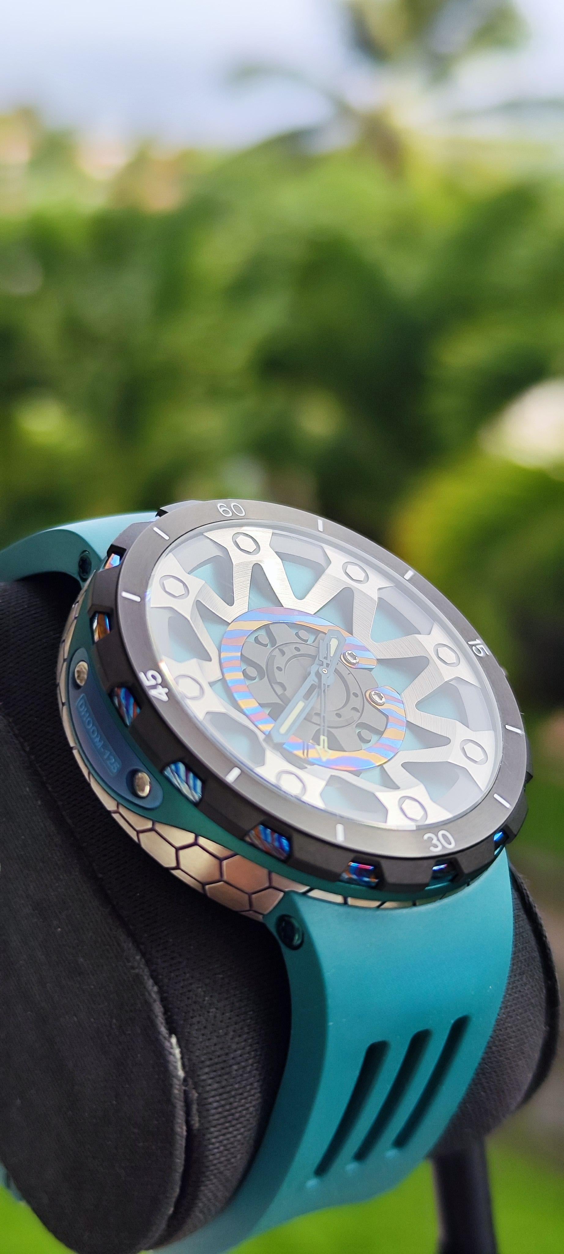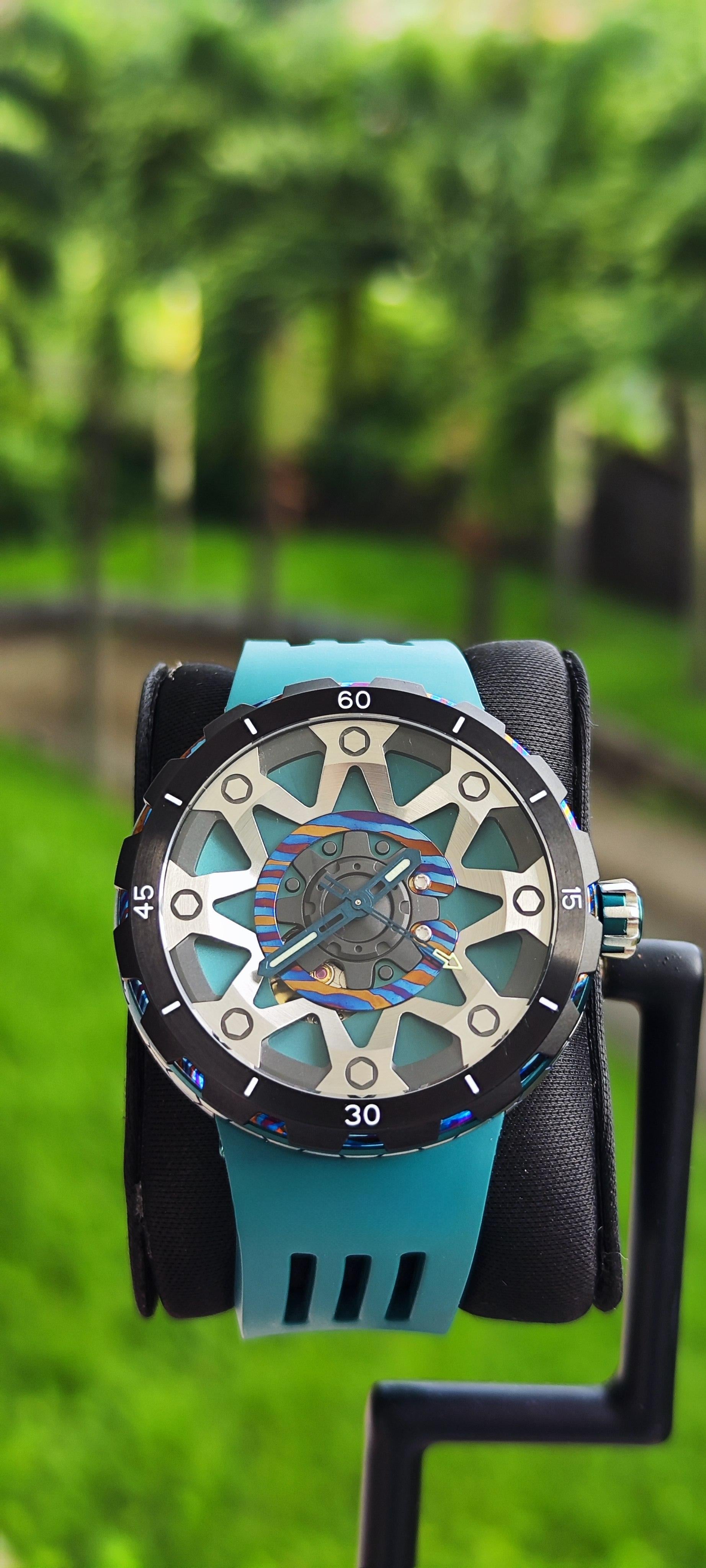 ⚙️ Boîtier Forgé : Titane & Damascus